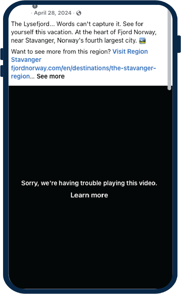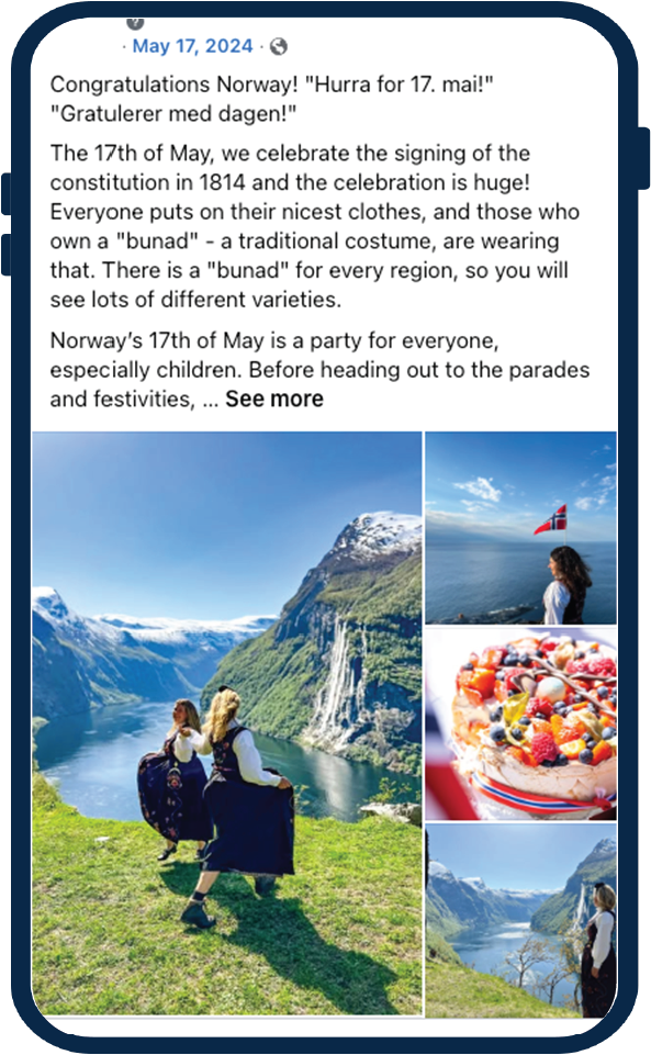 I 2024 nådde vi ut til 5,7 millioner kontoer med innholdet vårt på facebook og Instagram.